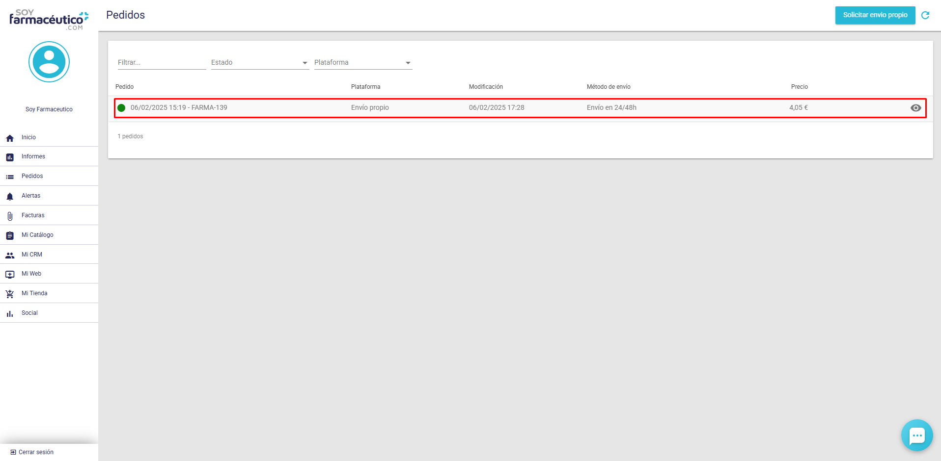 Si necesitas enviar un pedido desde tu farmacia sin depender de contratar un transportista u otras plataformas, puedes hacerlo fácilmente a través de nuestra herramienta de envíos propios.