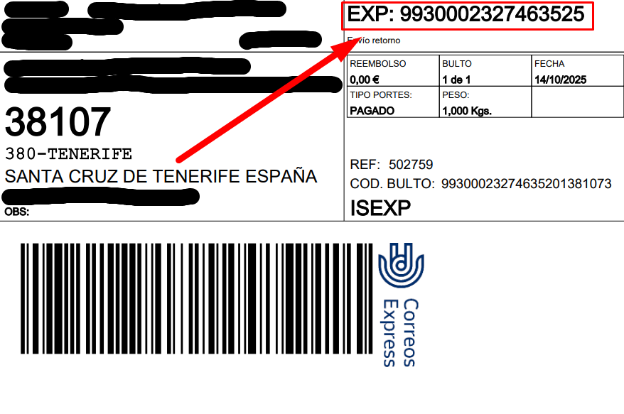 - ⚠️ Canarias, Ceuta y Melilla: Enviar factura a clientes@correosexpress.com indicando el número de envío.